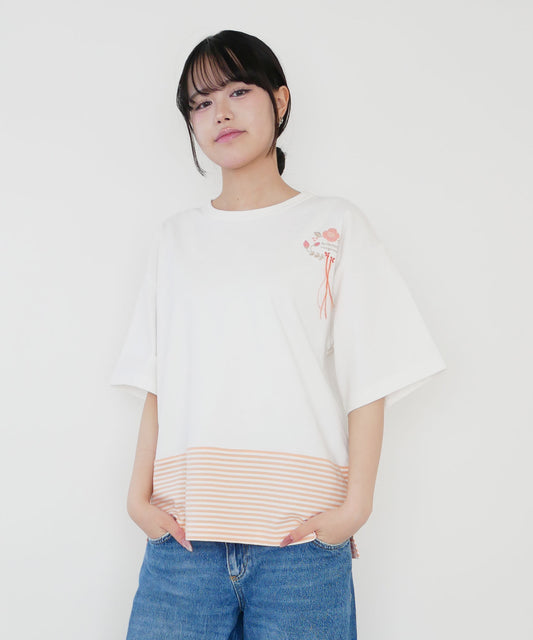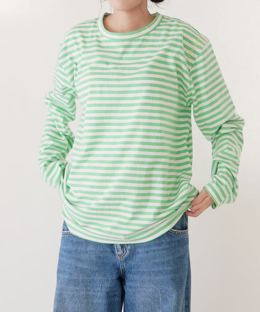 刺繍入り天竺ボーダー長袖Tシャツ(ユニセックス)