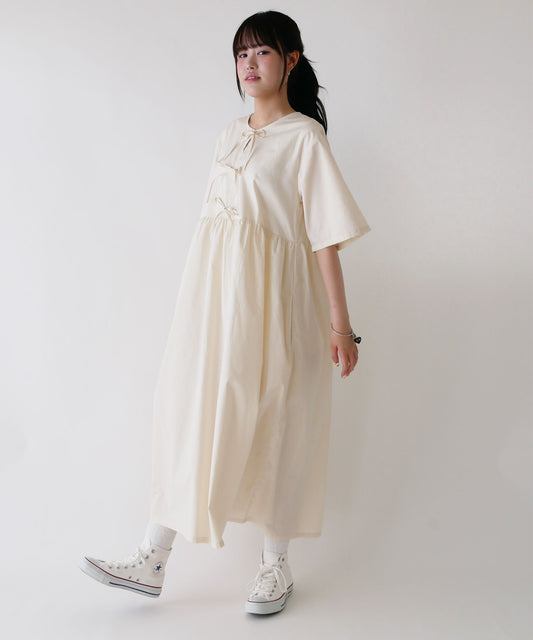 刺繍入りコットンブロード前リボンワンピース