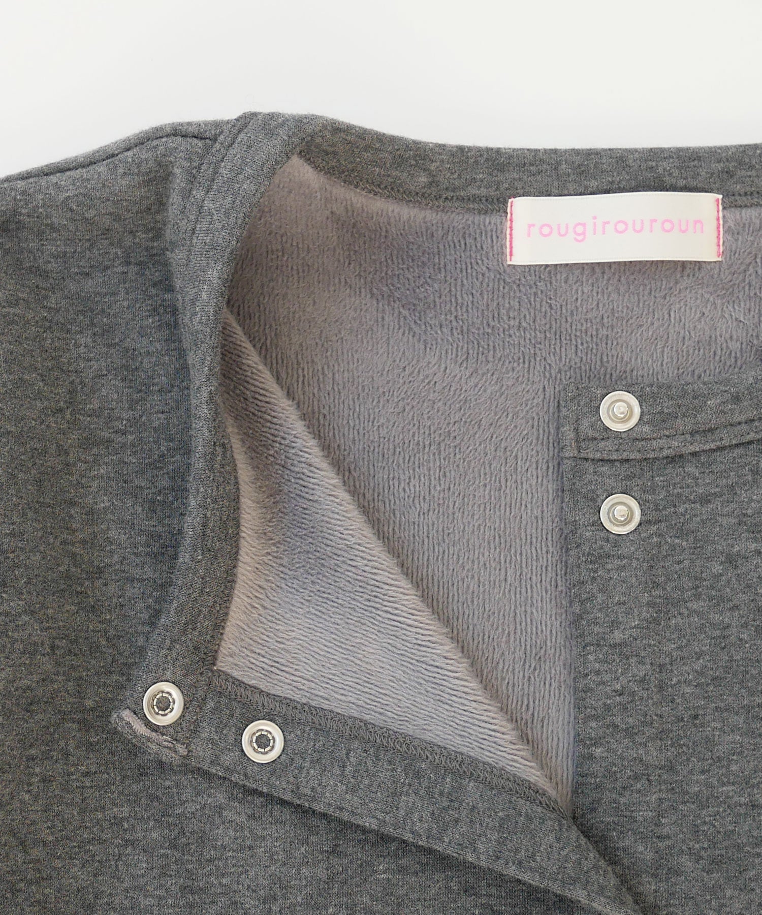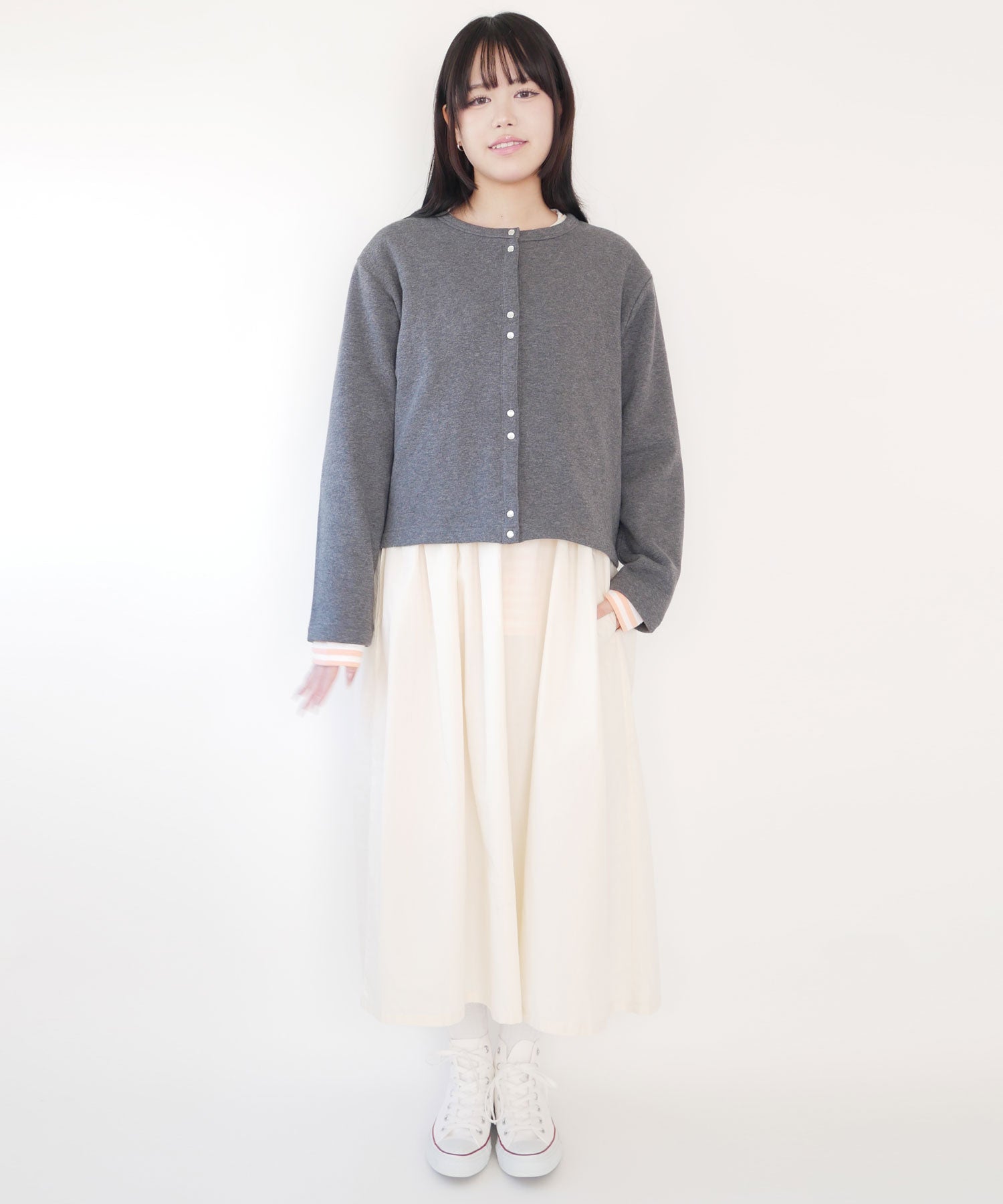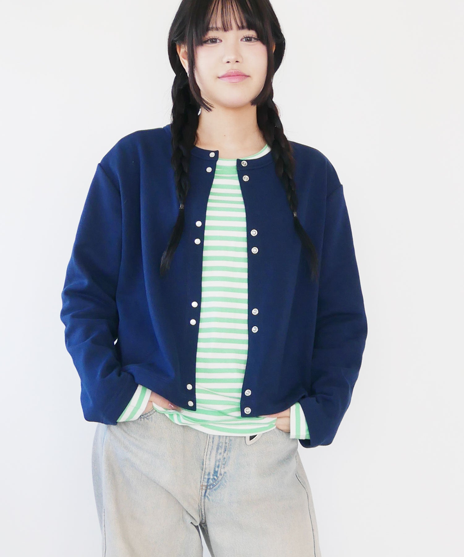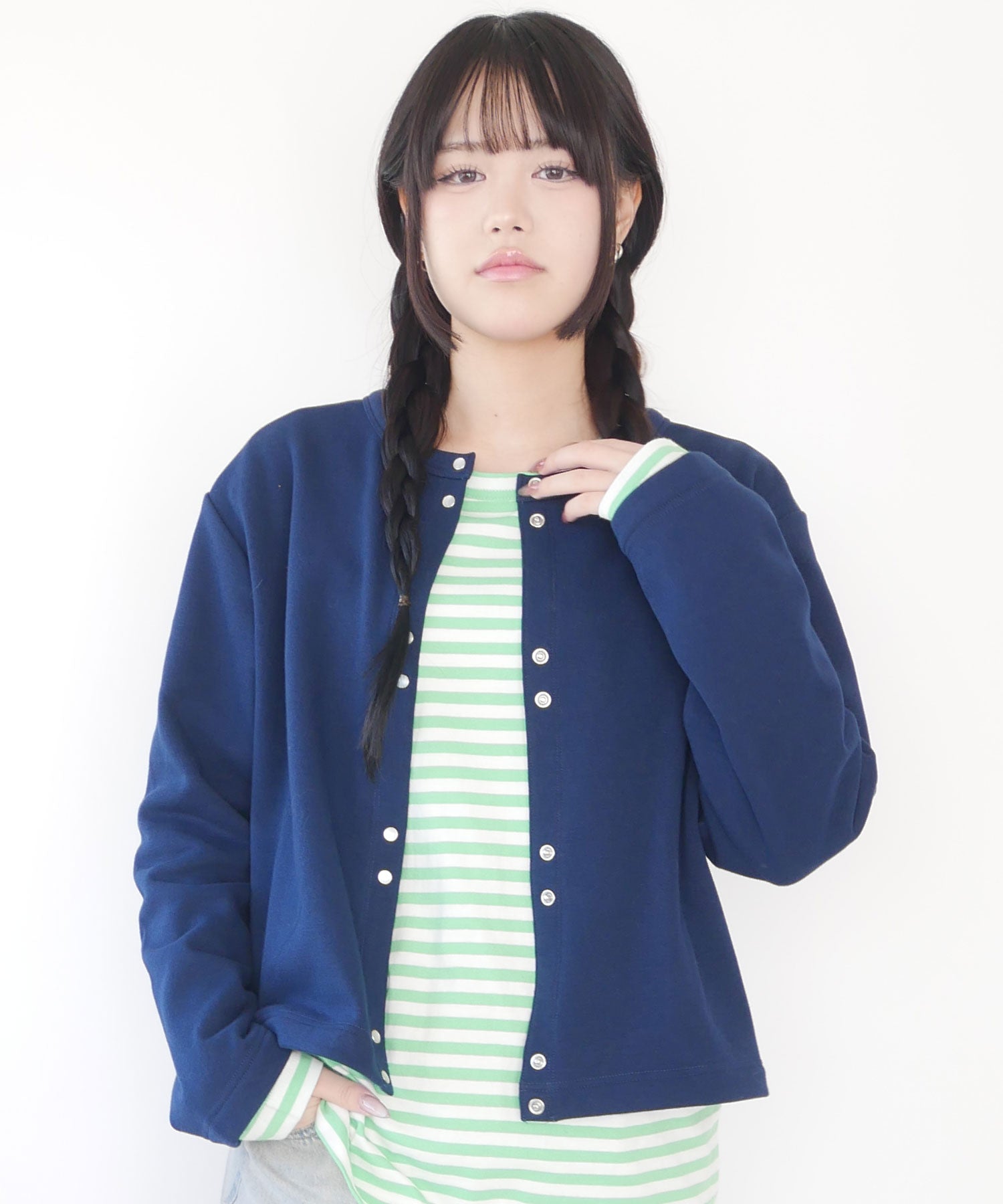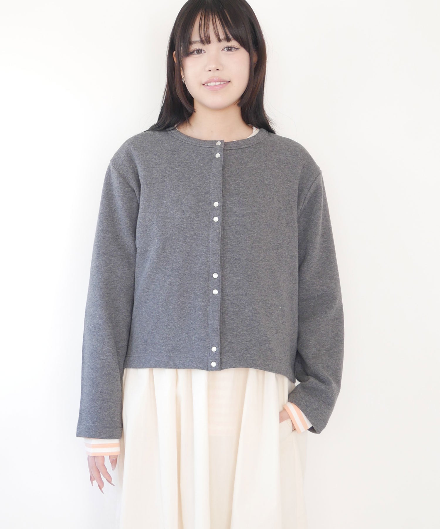 肌寒い季節にぴったり、裏面がシャギー起毛のふわっと暖かなカーディガン。ストレッチで着やすく、もちっとした肌触りが特徴です。前開きドットボタンの配置もおしゃれ♪
